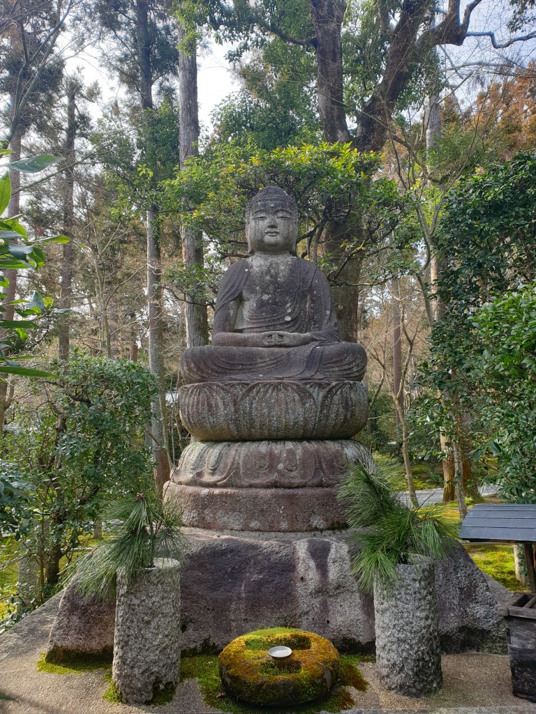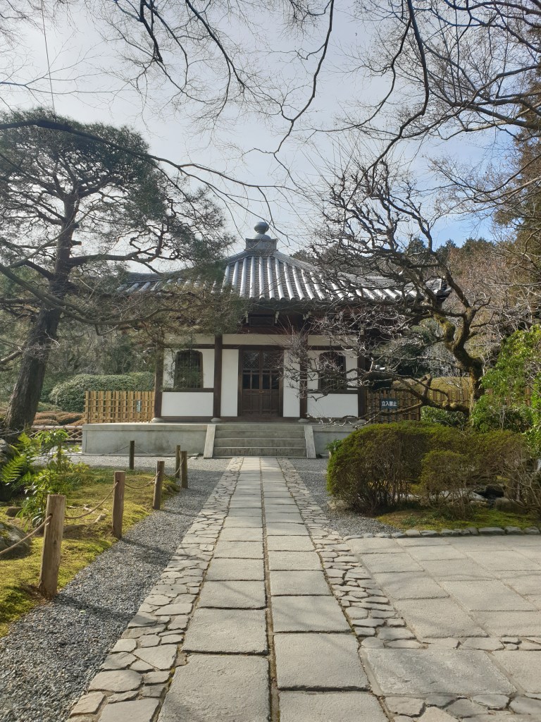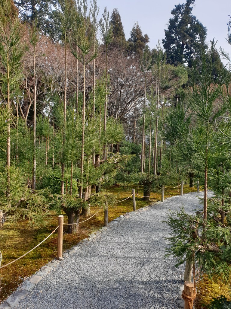 Der Tempel hat aber mehr zu bieten, als nur diesen Steingarten – der ist nämlich gar nicht so gross. Auch hier gibt es einen Rundgang, der um einen kleinen See führt. Besonders gefallen hat mir eine kleine Insel im See, die man über eine Brücke betreten kann. Der Pfad führt dann weiter zu einem weiteren Tempelgebäude und durch einen Kiefernhain hindurch zurück zum See, wo es dann zurück zum Ausgang geht.