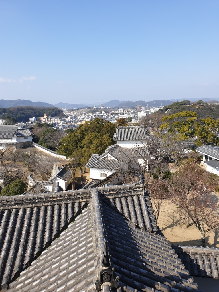 Aus den Fenstern der Burg hat man eine wunderschöne Aussicht über das Städtchen von Himeiji. Und wenn man genug hat vom Burginnern, kann man nach dem Abstieg im kleinen Park spazieren, der die Burg umgibt.
